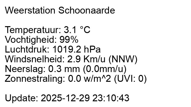 Sinds 2021 heb ik een weerstation geplaatst in Schoonaarde. Dit weerstation verzameld alle standaard parameters.