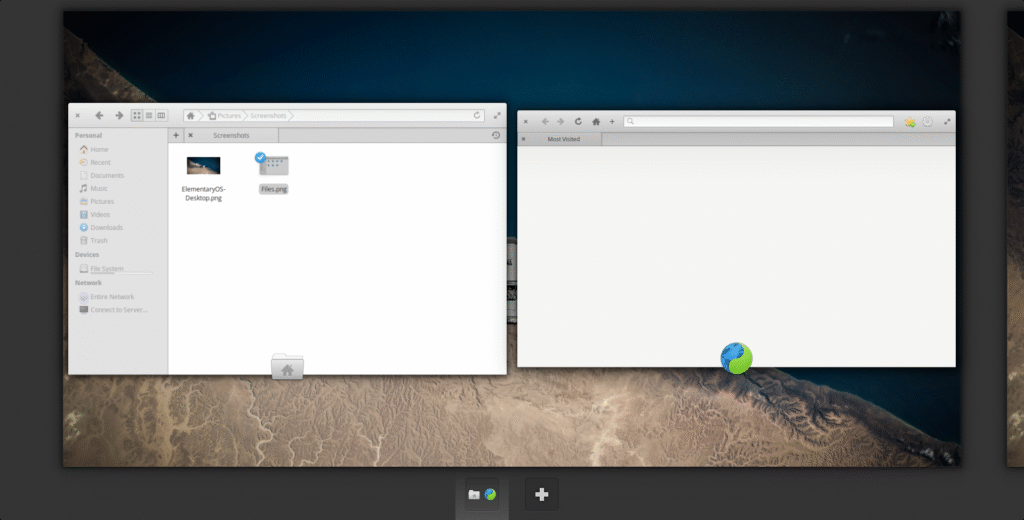 Het multitask systeem ziet er uit zoals op MacOS. Het ondersteund meerdere bureauladen wat altijd handig is als je veel programma’s open hebt.
