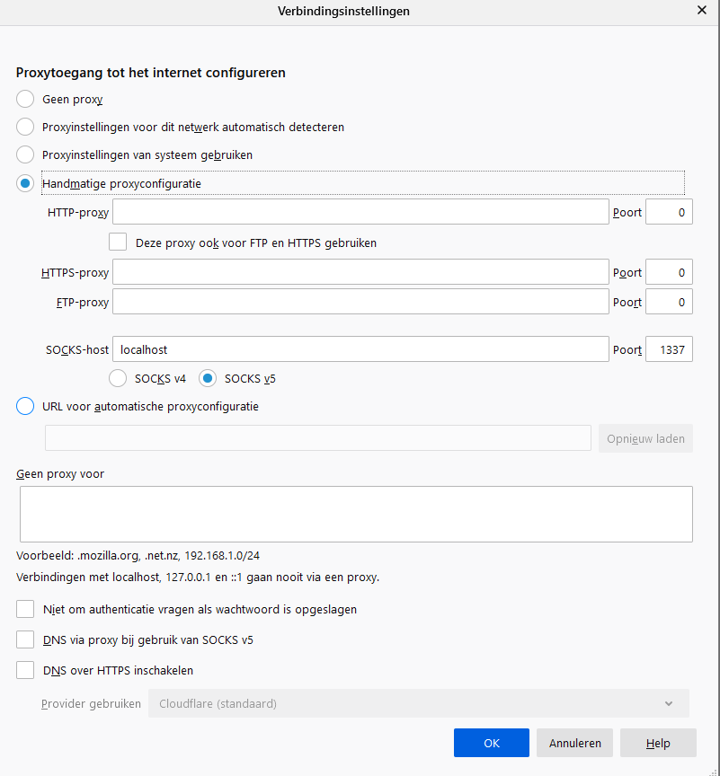 Dit opent een sock5 proxy op poort 1137 op jouw localhost. Je kan deze dan instellen in jouw browser.